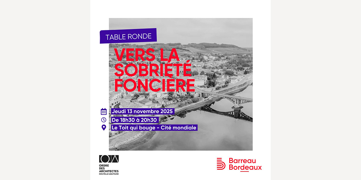 CoCo Architecture interviendra dans le cadre de la table ronde VERS LA SOBRIÉTÉ FONCIÈRE 📅 Le jeudi 13 novembre 2025 – 18h30 📍 Le Toit qui bouge – Cité Mondiale, Bordeaux 🔗 Programme et Inscription https://www.barreau-bordeaux.com/colloque-sobriete-fonciere-bordeaux-2025/ Cette table ronde organisée par Le Barreau de Bordeaux et l’Ordre des Architectes de Nouvelle-Aquitaine abordera les enjeux de […]