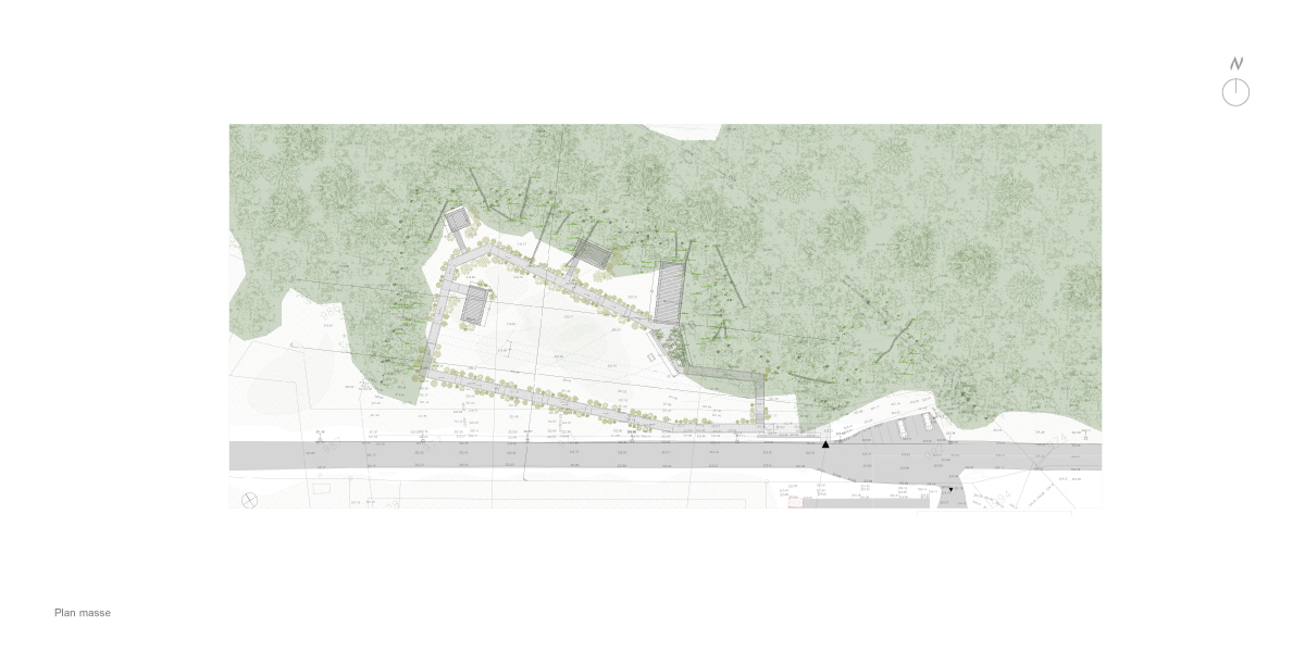 Le terrain d’étude se situe en plein cœur du Quercypôle, un parc d’activités étendu sur 68 hectares, qui accueille plus d’une vingtaine d’entreprises. C’est dans ce contexte particulier que la Communauté de Communes du Grand-Figeac souhaite créer les bureaux de demain. Ces derniers s’implantent au sein d’un espace boisé intact, préservé de toute activité humaine, abritant de plus des espèces protégées. Les contraintes liées à l’urbanisme de la ville, mais aussi à l’espace boisé du site ont généré un ruban de promenade sinueux au sein du site, entre clairière et lisière. L’idée maîtresse de cette approche réside dans la légèreté, tant physique que visuelle, de l’intervention architecturale.