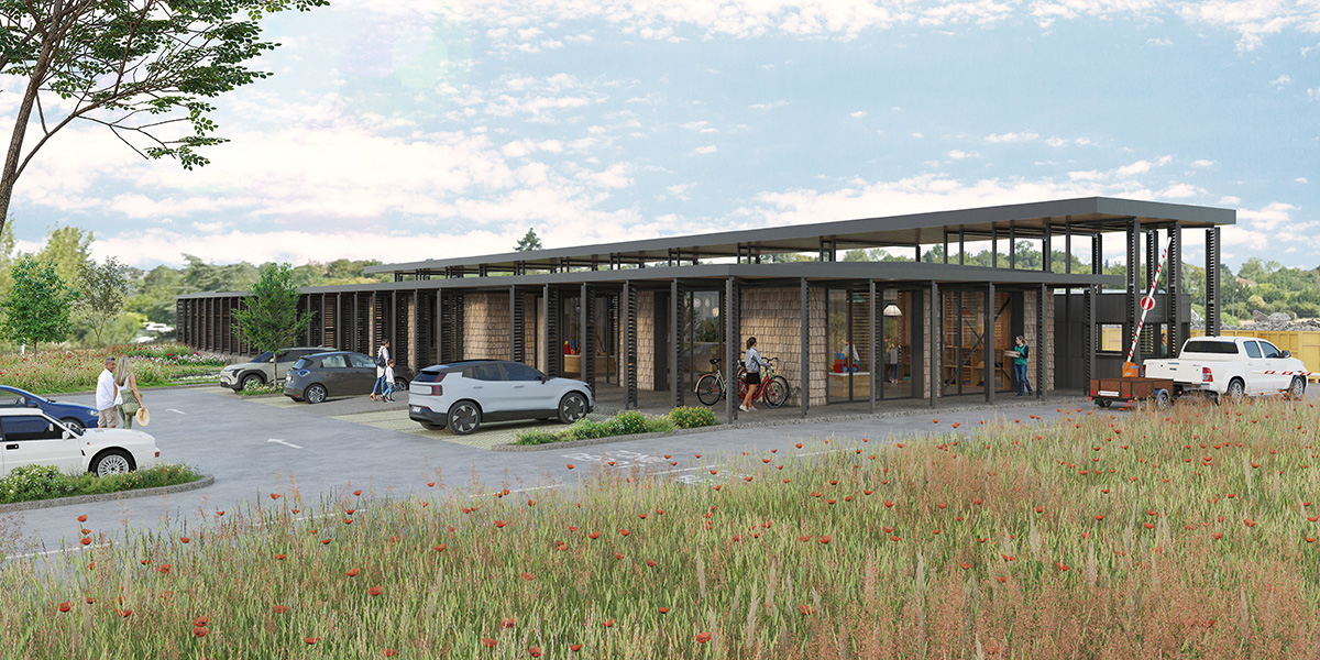 Par son architecture et sa conception, notre projet tend à être lui-même l’incarnation de la philosophie du SMICVAL, et doit se montrer exemplaire en matière de remploi et de démarche environnementale global. L’utilisation de matériaux de réemploi, ou issus de filières zéro déchet pour la construction, la recherche d’une fonctionnalité optimale, de simplicité et d’économie, ont été les lignes directrices du projet.