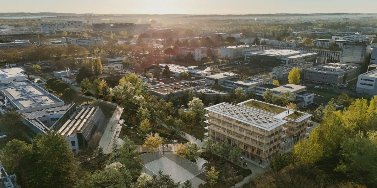 Le projet de construction du bâtiment O « cœur OMP » pour l’Observatoire Midi-Pyrénées s’inscrit dans un site universitaire à proximité du Canal du Midi. L’enjeu de la construction de ce bâtiment est la création d‘espaces communs pour les personnels situés sur des sites éloignés du campus. En cela, le projet propose de créer une trame de mobilité douce Nord-sud distribuant l’ensemble des bâtiments pour les piétons et les vélos. Le flux automobile est cantonné à l’extérieur du site grâce à un bouclage spécifique, permettant de générer un cœur d’îlot qualitatif et arboré.