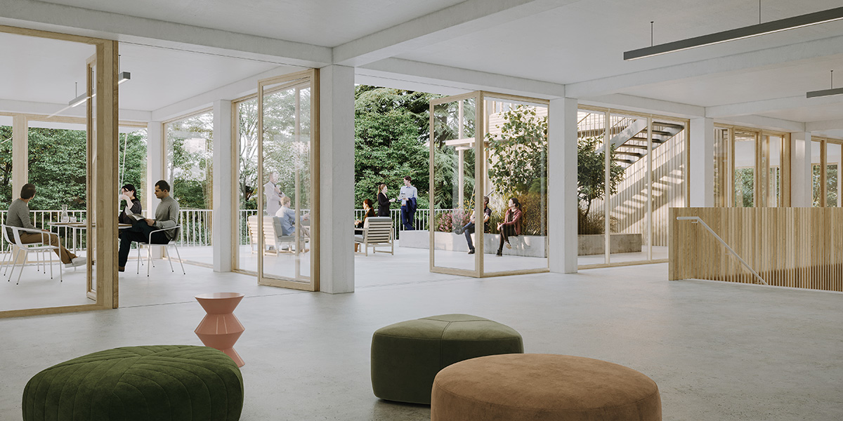 Ces espaces extérieurs deviennent des lieux de convivialité en lien direct avec la canopée de l’espace boisé du Canal.